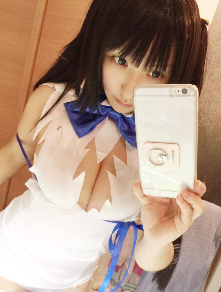 謎の紐が話題沸騰の『ダンジョンに出会いを求めるのは間違っているだろうか』のロリ神・ヘスティア様のコスプレ画像です。