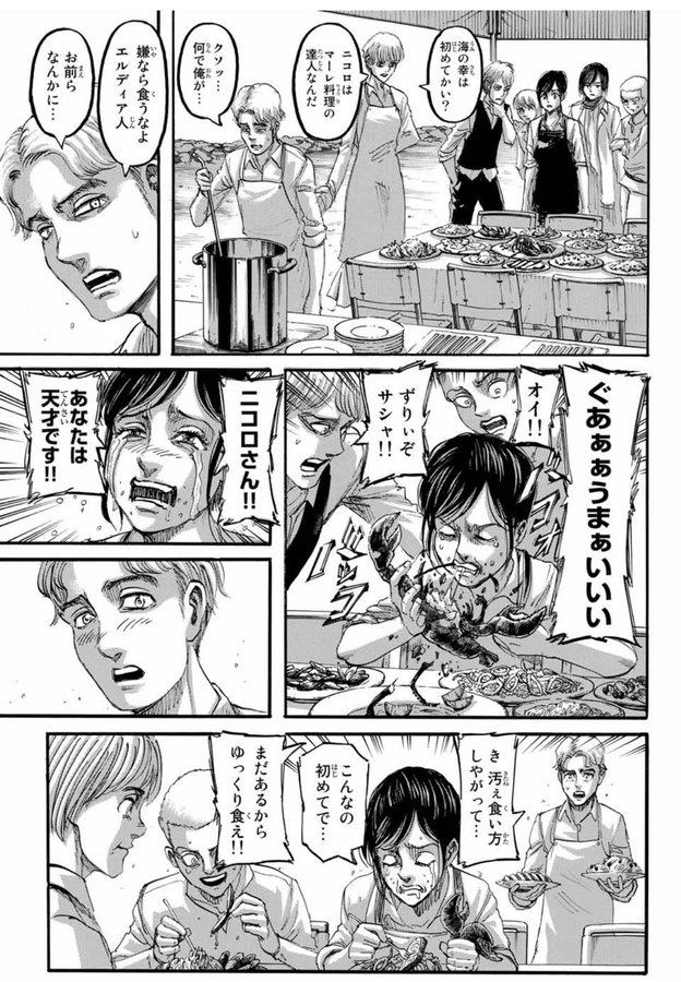 ニコロさん、サシャに美味しいマーレ料理を振舞ってくれてありがとう…
