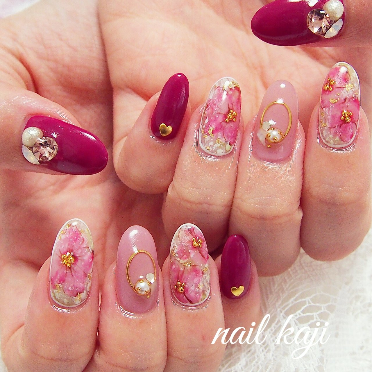 ハンド/フラワー/ピンク/レッド/ボルドー - nail_kajiのネイルデザイン ...